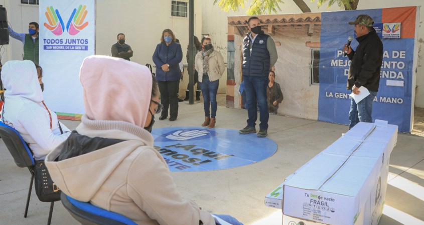 El presidente municipal, Luis Alberto Villarreal García entregó 24 de los 684 calentadores del Programa de “Mejoramiento a la Vivienda” a vecinos de la colonia Miguel Hidalgo y de las comunidades Cabrera, Órganos y San Martin.