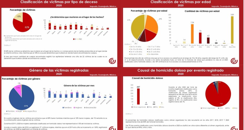 El reporte mensual de víctimas por homicidio doloso presenta la información condensada del registro de víctimas y eventos acontecidos en el municipio de Irapuato, Guanajuato.