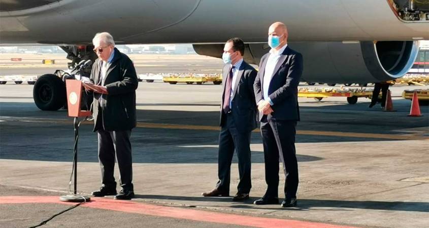 «Con el arribó programado de 219 mil 375 dosis, por lo cual nuevamente agradecemos a Pfizer seguiremos con el plan de vacunación como ya expresó usted señor presidente, a todos los trabajadores de la salud de los hospitales Covid públicos y privados y seguiremos cumpliendo el principal objetivo de que toda la población mexicana cuente con vacunas seguras y eficaces», señaló el secretario Alcocer.
