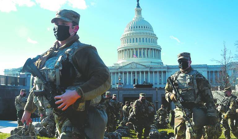 Las calles del centro de Washington, normalmente repletas antes de cualquier investidura, están cercadas por altas vallas y cerradas al tráfico, bajo la atenta mirada de hasta 25 mil militares de la Guardia Nacional, cinco veces más que los que hay en Irak y Afganistán.