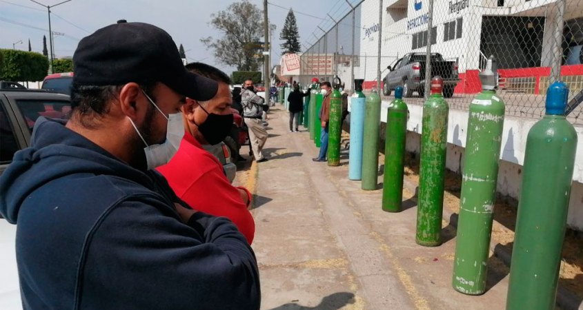 Sigue incrementándose la demanda de oxígeno, las filas comienzan desde antes de las 5 de la mañana y para poder surtir al medio día. Don Manuel habitante del municipio de Villagrán, ha recorrido una serie de negocios hasta llegar a la avenida Hidalgo # 1603 a la empresa ‘Gases Industriales’, para ver si podrá recargar el cilindro que requiere para su familiar. Como él, cientos de personas recorren la ciudad en la búsqueda de este oxígeno medicinal no solo para enfermos de COVID, sino también para quienes tienen otras enfermedades.