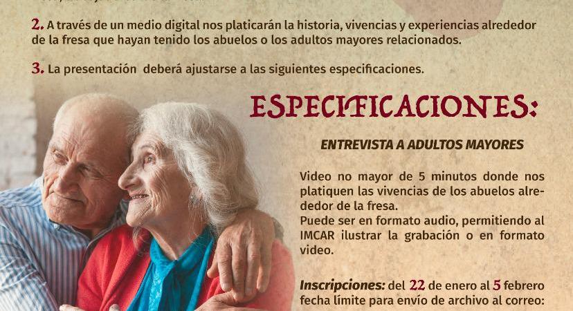 La mecánica de la convocatoria es, que a través de un video de cinco minutos se narre la historia o memoria de nuestros adultos mayores, en la que recuerden como era su vida alrededor de la fresa.