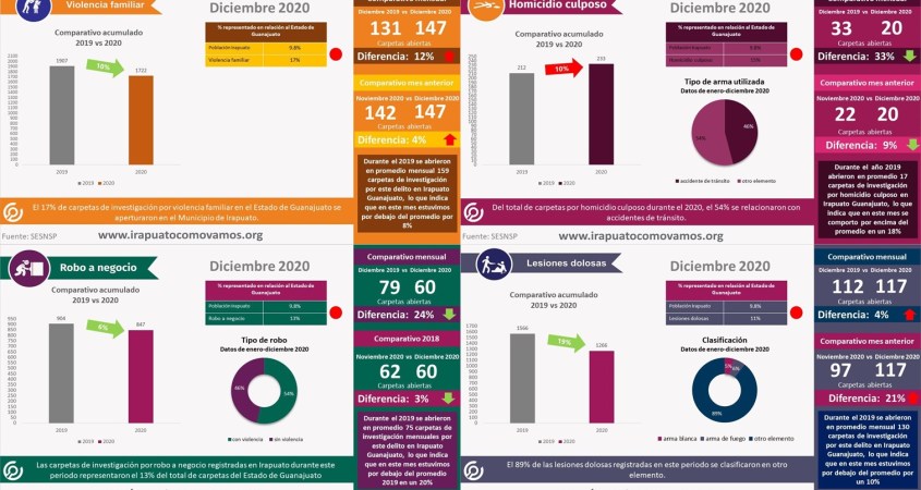 Como cada mes, el observatorio ciudadano Irapuato ¿Cómo vamos? realiza su reporte mensual de incidencia delictiva el cual emana de las cifras del Secretariado Ejecutivo del Sistema Nacional de Seguridad pública.