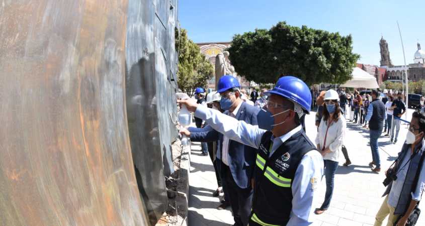 En compañía del gobernador, Diego Sinhue Rodríguez Vallejo e integrantes del Consejo Consultivo del Rescate del Centro Histórico, el presidente municipal, Ricardo Ortiz Gutiérrez, supervisó el avance de las obras.
