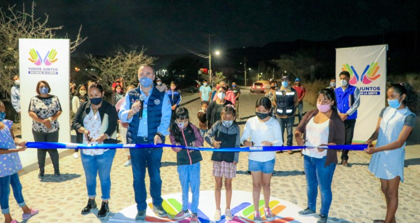 En la calle principal se pavimentaron 797 metros lineales por 8 metros de ancho con piedra bola ahogada en cemento; se construyeron banquetas de concreto hidráulico estampado, y se añadieron luminarias LED. Además, por primera vez se incluyó la red sanitaria y la línea de agua potable en la comunidad.