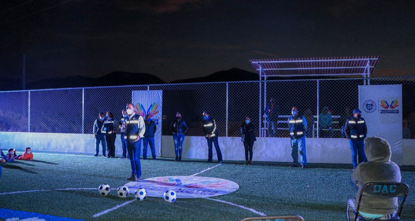 Gracias a una inversión superior a los 850 mil pesos este espacio deportivo que beneficiará a toda la localidad cuenta con pasto sintético, juego de porterías con red, malla ciclónica y gradas.