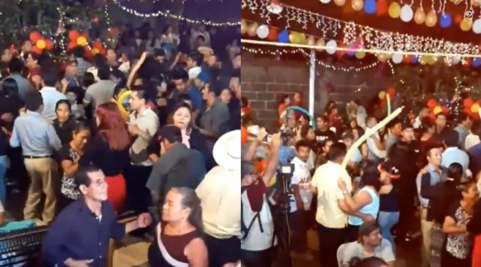 En videos que circulan en redes sociales, se observa a cientos de personas sin cubrebocas y sin sana distancia celebrando.
