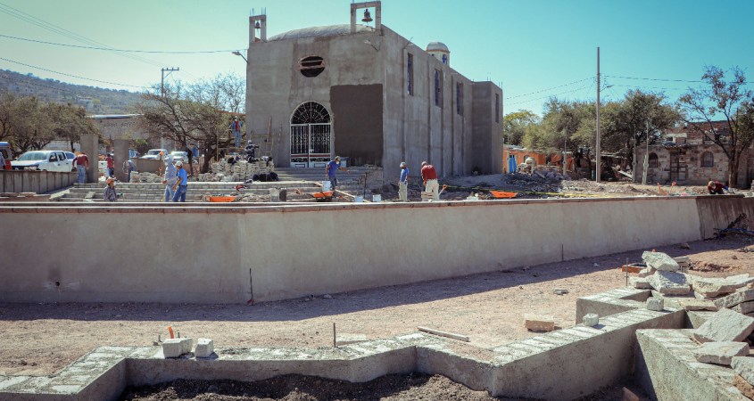 El proyecto tiene un avance del 70%; los trabajos realizados hasta el momento es el trazo y nivelación de terreno, excavaciones para colocar una plantilla de concreto, construyeron los muros de piedra perimetrales y los muros de tabicón en jardineras, con detalles de aplanado y cantera, se coloca adoquín tipo San Luis en explanada y pasillos.