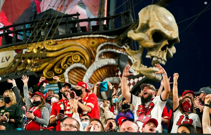 Pero afuera del estadio, donde los Buccaneers de Tampa Bay derrotaron a los Chiefs de Kansas City, se veía multitudes de personas juntas y sin mascarillas, gritando, abrazándose y colmando calles y bares.