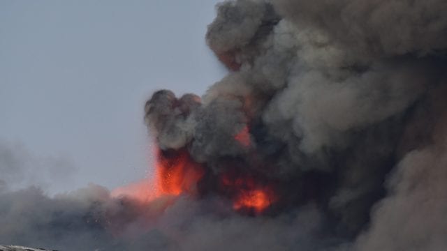 La erupción del cráter sureste del volcán, con una fuerte actividad explosiva y coladas de lava, comenzó a las 16.00 hora local (15.00 GMT) y provocó una lluvia de ceniza y piedras de hasta un centímetro de diámetro en la provincia.