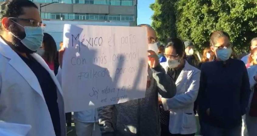 Los inconformes mostraron cartulinas en donde resaltaron el hecho de que México es el país donde más personal médico y de enfermería ha fallecido durante la contingencia sanitaria, por lo que exigieron ser vacunados a la brevedad.