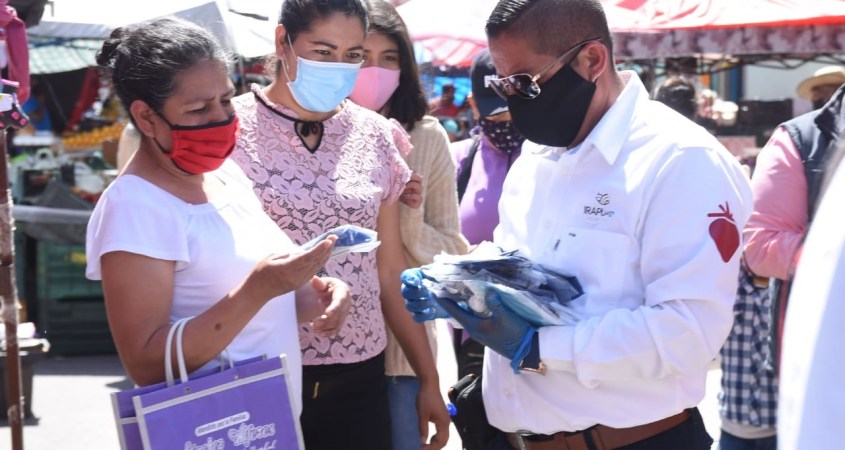 Con la visita al tianguis de la colonia Constitución de Apatzingán, suman 18 de estos espacios de comercio, a los que se ha acudido para entregar cubrebocas y kits de protección, durante estos primeros meses de 2021, lo que suma un total de 50 tianguis visitados desde el inicio de la pandemia, en marzo de 2020.