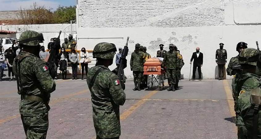 “El día de hoy lo despedimos por haber causado baja del Ejército y Fuerza Aérea Mexicana por haber fallecido en el cumplimiento del deber”, expresó un mando de la Fuerza Aérea Mexicana y dio inicio a los honores fúnebres.