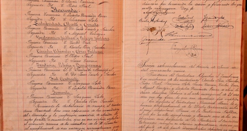 Entre los archivos, se descubrió el acta de sesión de Ayuntamiento más antigua, en la que quedaron registradas las actividades, propuestas y temas que los ediles de la época impulsaban para el desarrollo del municipio y la sana convivencia de sus pobladores.