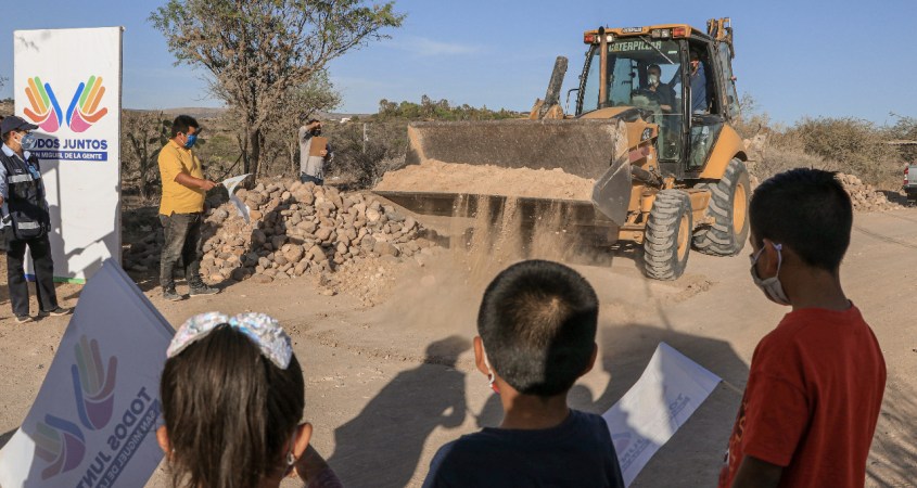 El presidente municipal Luis Alberto Villarreal García dio el banderazo de salida para comenzar la segunda etapa de rehabilitación del camino principal en la comunidad de San Rafael.