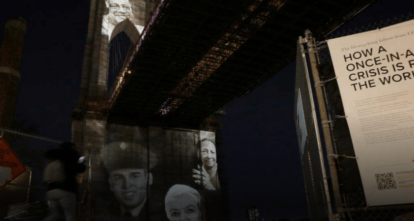 Familiares de las víctimas recordaron a sus fallecidos frente al puente de Brooklyn, sobre el que se proyectaron las imágenes de algunos de los que sucumbieron a la enfermedad, que se cebó con barrios como Queens, Brooklyn o el Bronx.