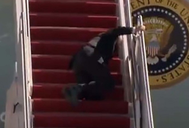 En el video se puede ver al presidente Biden subiendo las escaleras rojas cuando, repentinamente, tropieza en varias ocasiones ante los camarógrafos que se encontraban grabando todo.
