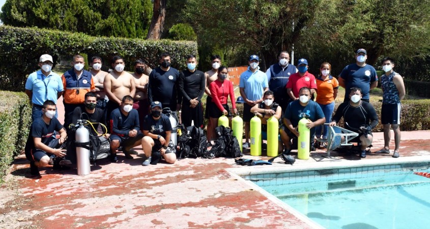 Con el objetivo de renovar y reforzar el cuerpo de rescate de buzos de Protección Civil y Bomberos, diez elementos fueron capacitados y certificados en Técnicas de Buceo y Rescate en Aguas Turbias.