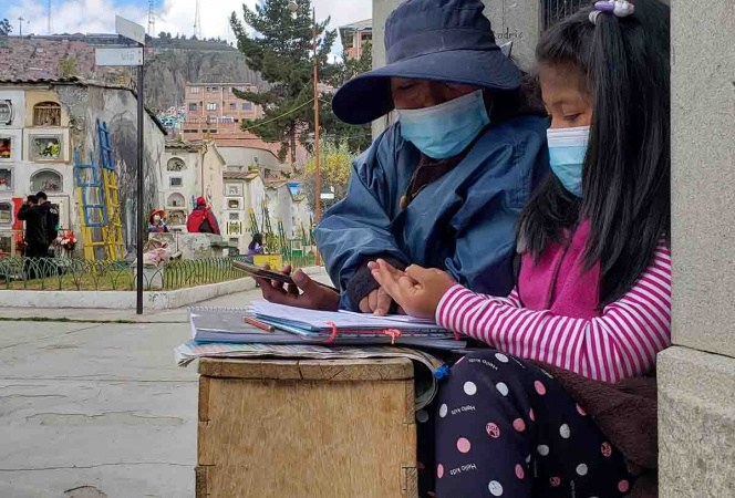 Bolivia ha mantenido sus escuelas en gran parte cerradas durante el brote de covid, lo que ha llevado a muchos padres a encontrar formas novedosas de hacer que sus hijos estén en línea para la clase, especialmente con conexiones limitadas a internet y altos costos de datos móviles.