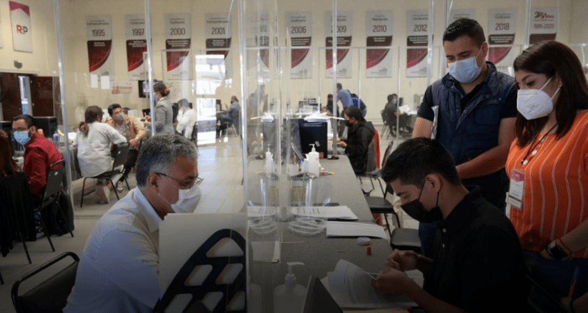 En atención a la contingencia sanitaria generada por COVID-19, el Instituto Electoral determinó que solo podrían ingresar al edificio para hacer el trámite cuatro personas por partido político o aspirante. Las oficinas también se adecuaron para la atención a las personas que llegaban con la documentación.