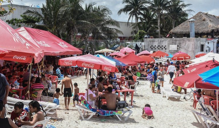 Pero imágenes y testimonios de los últimos días hablan de una situación muy diferente. A pesar de que las zonas de Cancún, Tulum y Playa del Carmen se ecuentran en semáforo amarillo y, por lo tanto, hay restricciones para el aforo de ciertos establecimientos y queda prohibido abrir bares y discotecas, los centros turísiticos operan al tope de su capacidad.