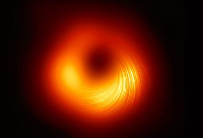 La polarización evidenció la estructura del campo magnético situado en los bordes del agujero negro y permitió producir una imagen precisa de su forma, parecida a un torbellino de filamentos.
