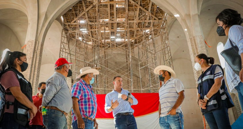 “Estamos cambiándole el rostro a nuestro municipio, cómo no darles las gracias, yo sé honrar la palabra igual que ustedes”, expresó Villarreal García, quien recorrió el templo y subió a la bóveda para conocer a detalle los avances de este icónico templo.