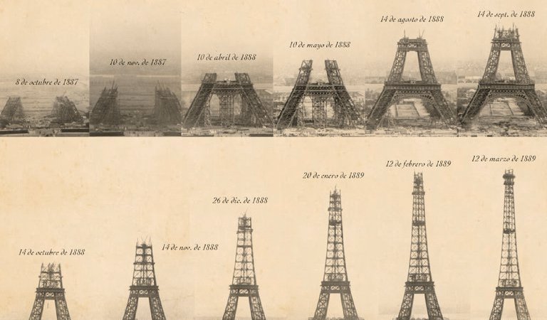 Las primeras excavaciones se realizaron el día26 enero 1887, y la obra finalizó el 31 marzo 1889. La construcción de la torre se realizó en, 2 años, 2 meses y 5 días, lo cual se consideró una auténtica hazaña técnica y arquitectónica, una “utopía realizada”. Es una velocidad récord, si se tienen en cuenta los medios rudimentarios de la época. El montaje de la torre es unamaravilla de precisión, como reconocieron todos los cronistas de la época.