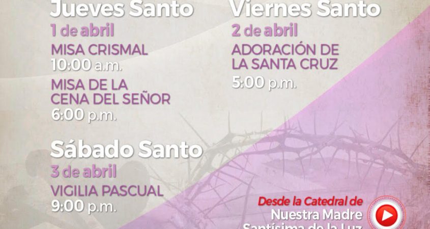 Las actividades iniciarán con la Misa Crismal a las 10:00 horas el Jueves Santo (primero de abril).