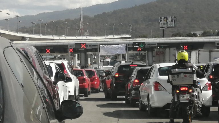 La saturación que se registra en la caseta México-Cuernavaca se da a pesar de que se abrieron 12 carriles para cobrar el peaje, pues ni eso ha sido suficiente para agilizar la salida de los autos.