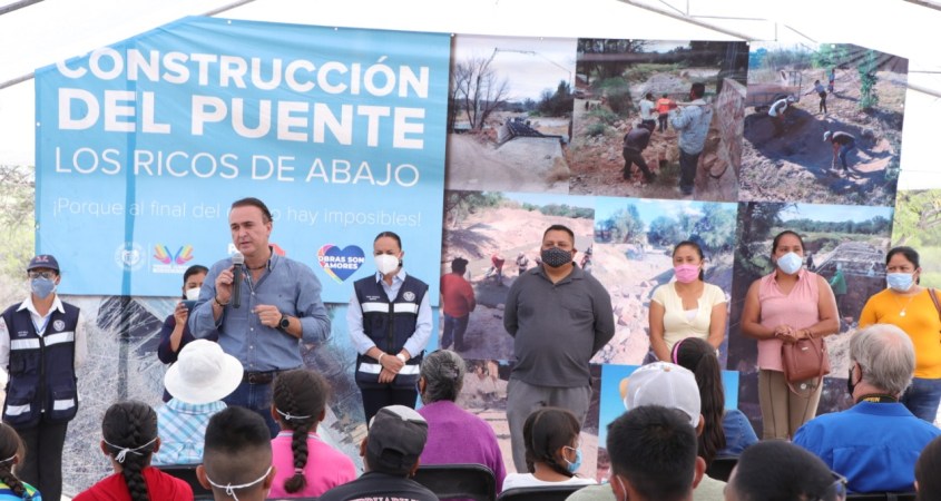 El presidente municipal, Luis Alberto Villarreal García en compañía del delegado Rafael Hernández Jacinto inauguró el puente vado de la comunidad Los Ricos de Abajo, obra ejemplar sobre el trabajo en conjunto entre sociedad y gobierno.