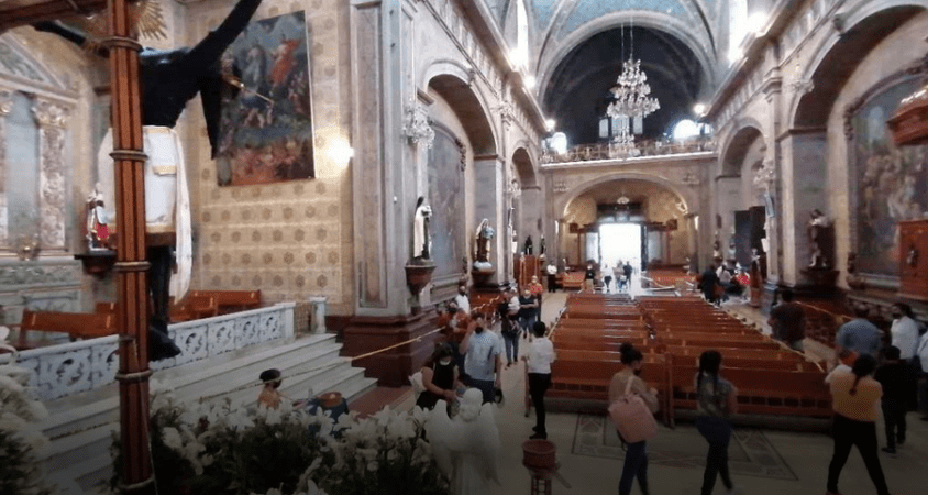 El personal de los grupos religiosos apoyado con personal de Protección Civil y de Cruz Roja formaron a las personas desde el jardín principal guardando la distancia, al ingresar se les proporcionó gel antibacterial y se les tomó la temperatura, además de que adentro no se les permitía permanecer, solo unos segundos frente a la imagen del Cristo que previamente descendieron.