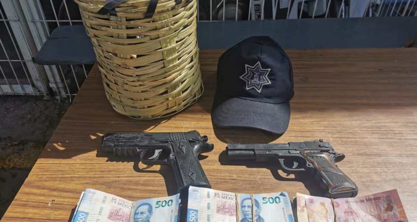 Al realizarles una revisión exhaustiva, se les aseguró el dinero y dos armas de juguete, motivo por el cual quedaron a disposición de la Fiscalía General del Estado, para que se determine su situación legal.