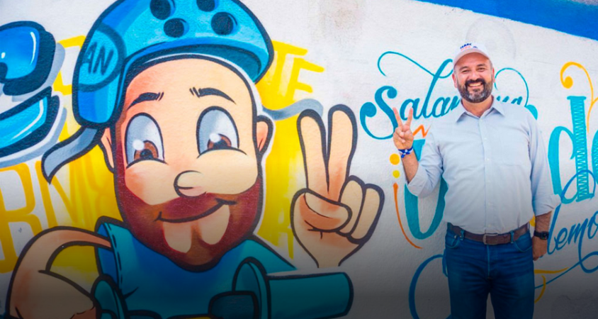 Hoy, el candidato se dio el tiempo para acompañar a quienes trabajan en la pinta de bardas de apoyo a su campaña y que destacan las propuestas que encabezan este proyecto político incluyente, donde todos caben, donde todos son bien recibidos.