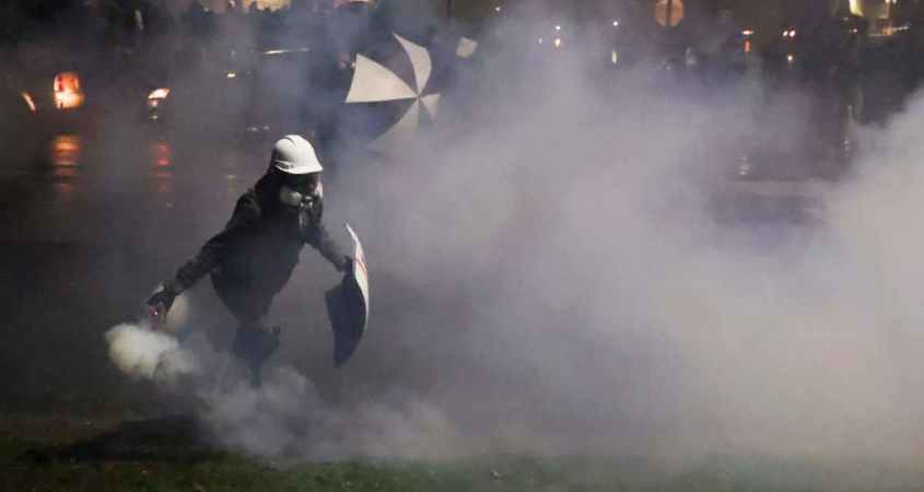 Cuando la multitud no se dispersó, la policía empezó a lanzar latas de gas lacrimógenos y granadas aturdidoras, y persiguió a algunos manifestantes.