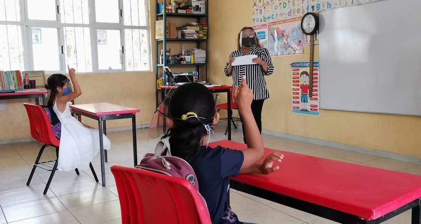 «Los niños mostraron su felicidad de regresar a sus aulas, y los pequeños de primer grado las conocieron por primera vez. En esta primera sesión los maestros realizaron un diagnóstico para saber cómo están sus alumnos y continuar con su aprendizaje”, señaló.