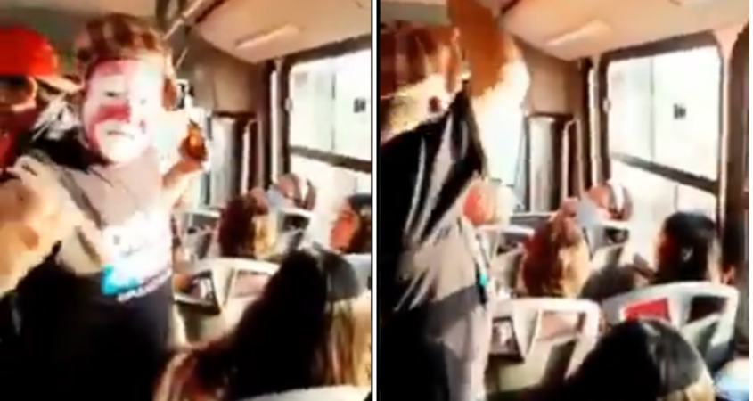 En redes sociales circula un video del momento en el que un payasito de autobús daba su show, cuando de pronto la unidad en la viajaba se aproxima al lugar donde ocurría una balacera.