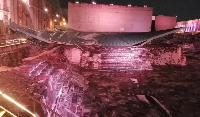 Luego de la lluvia y granizada que se reportó la noche de este miércoles en la Ciudad de México, usuarios de redes sociales difundieron imágenes de la caída de una estructura en el Templo Mayor, cerca de la explana del zócalo capitalino.