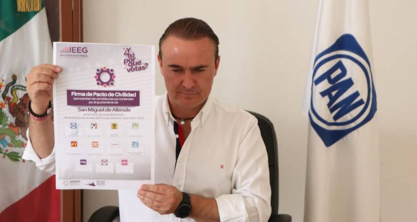 El candidato del PAN a la alcaldía de San Miguel de Allende, Luis Alberto Villarreal García, participó en la videoconferencia del Instituto Electoral del Estado de Guanajuato (IEEG) para presentar públicamente su firma del Pacto de Civilidad en el marco de las campañas electorales.