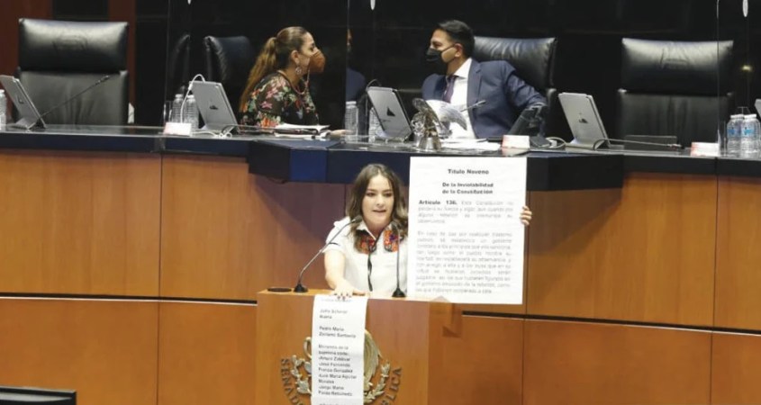 Al hacer uso de la palabra por casi 15 minutos –cuando el reglamento establece cinco minutos máximo–, Martha Márquez enfatizó que los senadores representan al pueblo, pero eso no significa que tengan “que violar la Constitución”.