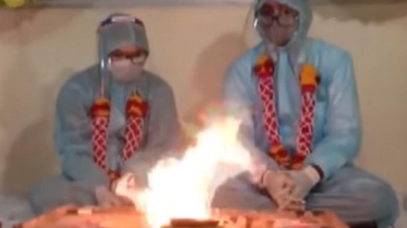 Según medios indios, la boda ocurrió en Madhya Pradesh y en el video se puede ver a la pareja y algunos asistentes entonando cánticos especiales para el evento.