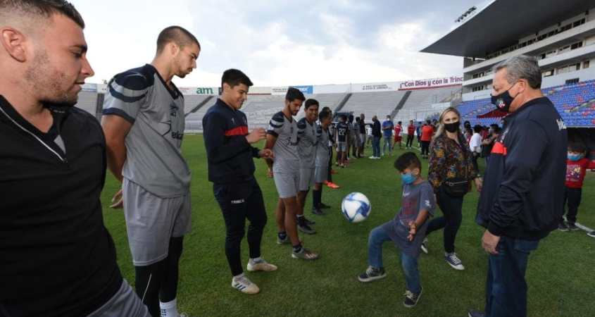 Los jugadores que se encuentran concentrados para enfrentar, el domingo 9 de mayo, al equipo Cruz Azul Hidalgo, recibieron en el estadio Sergio León Chávez a los pequeños que cumplieron uno de sus sueños, pisar el césped de un estadio profesional.
