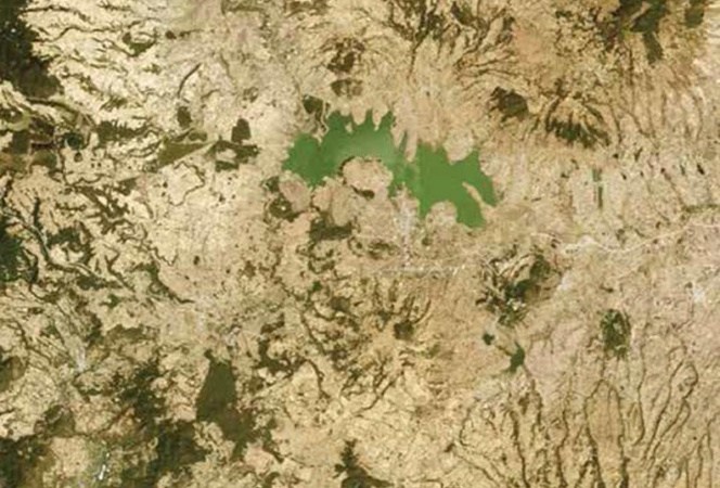 La Administración Nacional de Aeronáutica y el Espacio de Estados Unidos (NASA), informó que fotografías del Generador Operacional de Imágenes de Tierra (OLI, por sus siglas en inglés) en Landsat 8, muestran que la Presa Villa Victoria, uno de los principales suministros de agua para el Valle de México sigue a la baja y cuenta con apenas un tercio de almacenamiento.