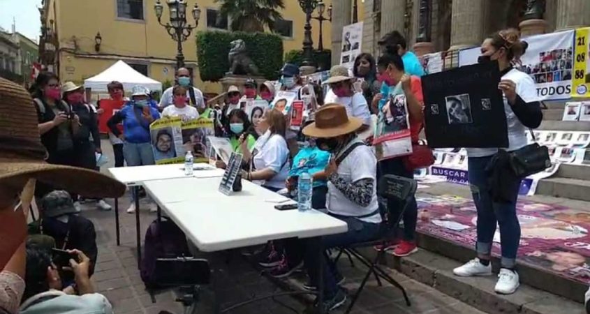 Con imágenes de sus familiares plasmados en pancartas y entonando consignas para exigir a las autoridades justicia, más de 200 personas, en su mayoría madres, se plantaron en las escalinatas del Teatro Juárez.