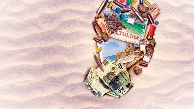 El rojo de la sangre, la violencia y el crimen organizado se mezclan con el turquesa del mar y el verde de la selva de Tulum, Quintana Roo.
