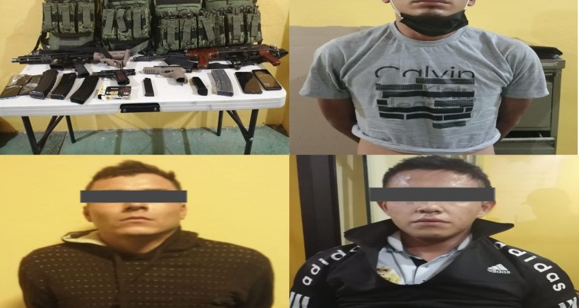 Mediante un operativo de rastreo con el sistema de videovigilancia y acción de la Secretaría de Seguridad Pública, aprehenden a 4 jóvenes (uno de ellos menor de edad) quienes llevaban armas largas y cortas, chalecos antibalas y cartuchos útiles. Antes de su captura, presuntamente agredieron a una familia, lesionaron a una mujer y una menor; en