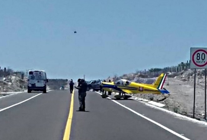 En La Paz Baja California Sur, una avioneta de “Entrenamiento” de la Escuela de Aviación Naval, matrícula ANX-1422, tuvo que realizar un aterrizaje de emergencia en medio de la carretera que comunica a La Paz con el municipio de Comondú.