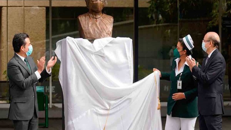 Al debelar la placa de la Plaza del Personal de Enfermería Ilustre del IMSS y el Busto Personal de Enfermería Covid-19, en la explanada del Hospital de Especialidades del Centro Médico Nacional Siglo XXI, el Instituto Mexicano del Seguro Social (IMSS) reconoció el valor y la disciplina del personal de enfermería que hace frente a la emergencia sanitaria.