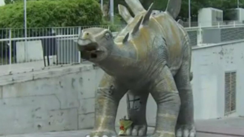 Un hombre de unos 40 añosfue hallado muerto dentro de una estatua de un dinosaurio en Santa Coloma de Gramanet, una localidad aledaña a Barcelona, indicó este martes la policía catalana.