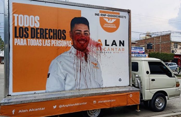El pasado lunes, un espectacular con el rostro de Alan Alcántar fue rociado con una sustancia que parecía sangre, lo cual posiblemente sea un ataque originado por la homofobia en el marco del mes del orgullo gay, aseguró Juan Pablo Delgado, candidato de MC a la Alcaldía de León.